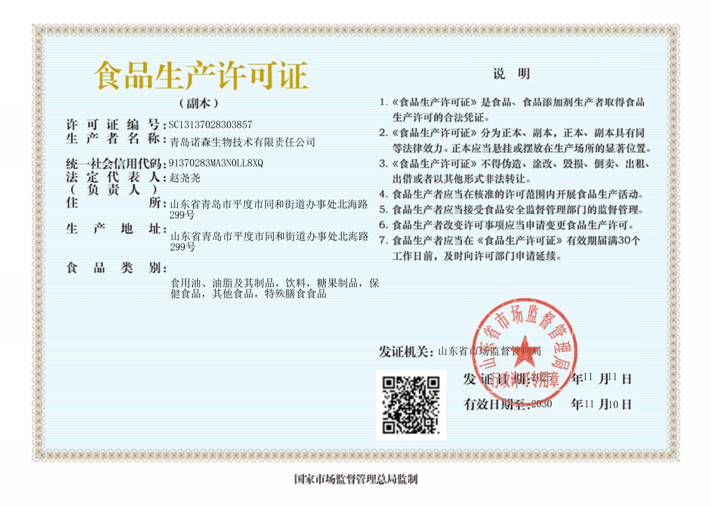 Company HistoryCorporate Milestones 2014 – 2018: Foundation & Brand Establishment Oct 2014: Establishment of Qingdao Yihao Biotechnology Co., Ltd. Apr 2018: Nuosen Bio was founded, focusing on the R&D, production, and OEM/ODM services of food-grade probiotics. 2020: Scaling & Capital Growth Mar 2020: Secured a 40 million RMB equity investment from the Shandong S&T Innovation New Momentum Fund. Mar – Apr 2020: Implemented a dual-factory strategy: Construction of the Pingdu plant (Qingdao) began, and the Changle facility (Weifang) officially commenced production. 2021 – 2022: Innovation & R&D Excellence Aug 2021: Honored as a "Specialized, Refined, Unique, and Novel" (SRUN) Enterprise in Qingdao. Mar – Jun 2022: Granted patents for core proprietary strains, including L. paracasei NSL0201 and B. animalis NSY0201. Aug 2022: Approved to establish the Qingdao Lactic Acid Bacteria Industrialization R&D Expert Workstation. 2025 – Present: Strategic Integration 2025: Officially joined Grand Life Science Group, embarking on a new chapter of global strategic growth and industrial scaling. -